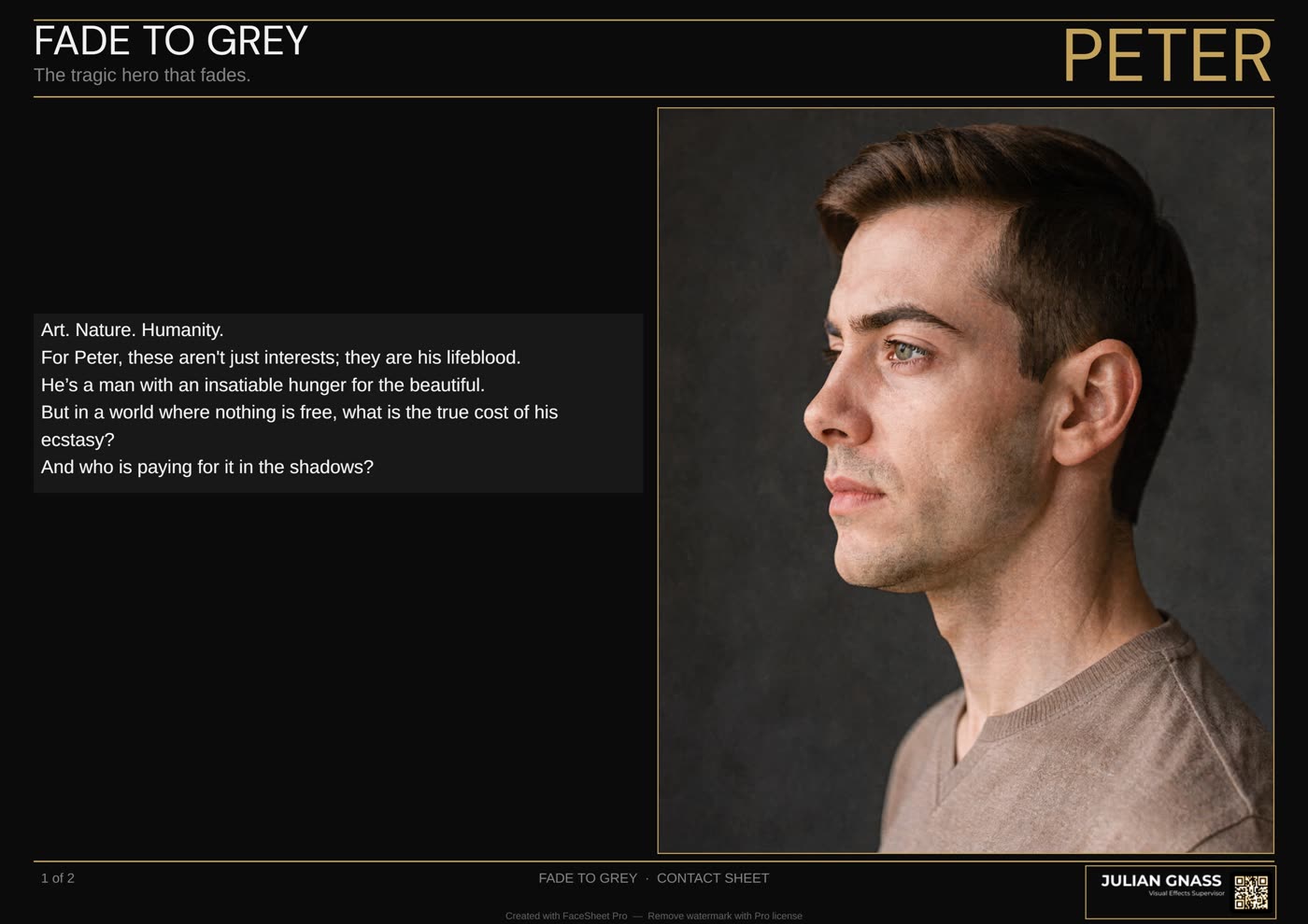 Actors, assets, characters for games, concept art, environments, VFX shots, holiday photos — anything with images that deserves a beautiful layout. Pick a template, drop them in, export at 300 DPI. Done.